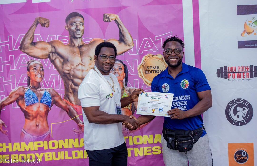 Dans sa dynamique de promotion de l’excellence, la Fédération Béninoise de Bodybuilding et Fitness, en partenariat avec le Centre d’Expertise et de Formation des Professionnels du Sport, a organisé la première édition de la formation de fitness au profit des moniteurs de salle. Après un mois de formation de haut niveau, la cérémonie de clôture s’est tenue le samedi 25 octobre 2025 au siège de la fédération.