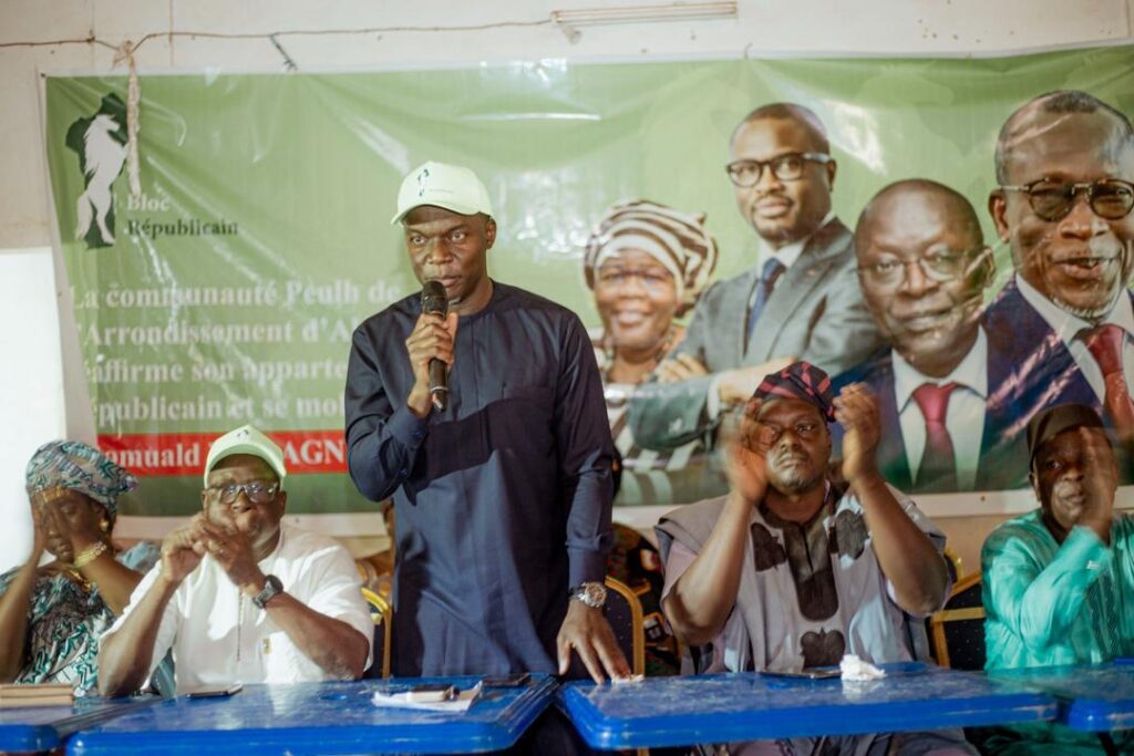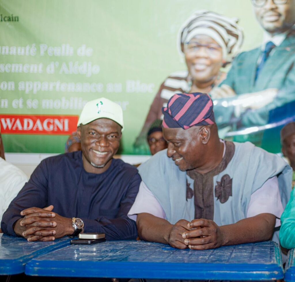Portée par ces acquis, la communauté peulh d’Alédjo a exprimé son adhésion totale à la candidature de Romuald Wadagni. Adjélé Aminou a insisté sur l’importance de l’enrôlement massif au RAVIP, condition essentielle pour exercer le droit de vote en 2026. Il a également plaidé pour une meilleure inclusion des jeunes Peulhs dans les sphères de décision. ASSO Boukari, mesdames AFFO Alice, BIO BANGANA Moussilifatou, CONDE Pauline, ABALNOROU Monique et d’autres leaders politiques du BLOC RÉPUBLICAIN, ont également participé aux échanges.
