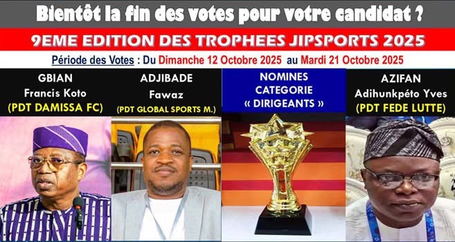 Aujourd’hui, sa nomination aux Trophées JIPSPORTS 2025 dans la catégorie “Dirigeant de l’année” sonne comme une reconnaissance méritée de ce travail acharné. C’est le couronnement d’un leadership éclairé, au service du Bénin sportif, de sa jeunesse et de sa crédibilité internationale. Fier, audacieux et résolument tourné vers l’avenir, Fawaz ADJIBADE n’est pas qu’un dirigeant ; il est le symbole d’un Bénin sportif en marche, d’une jeunesse qui innove et d’un avenir qui s’écrit en majuscules.